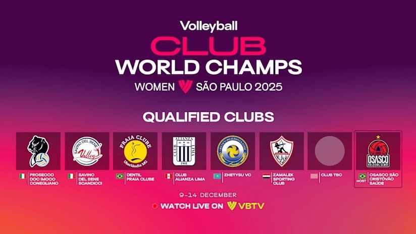 目前确定参赛的队伍包括意大利科内利亚诺、意大利斯坎迪奇、巴西乌贝兰迪亚海滩、秘鲁利马联盟、哈萨克斯坦杰特苏、埃及扎马雷克、巴西奥萨斯科,亚洲代表空缺的填补将成为国际排联接下来数日的工作重点。